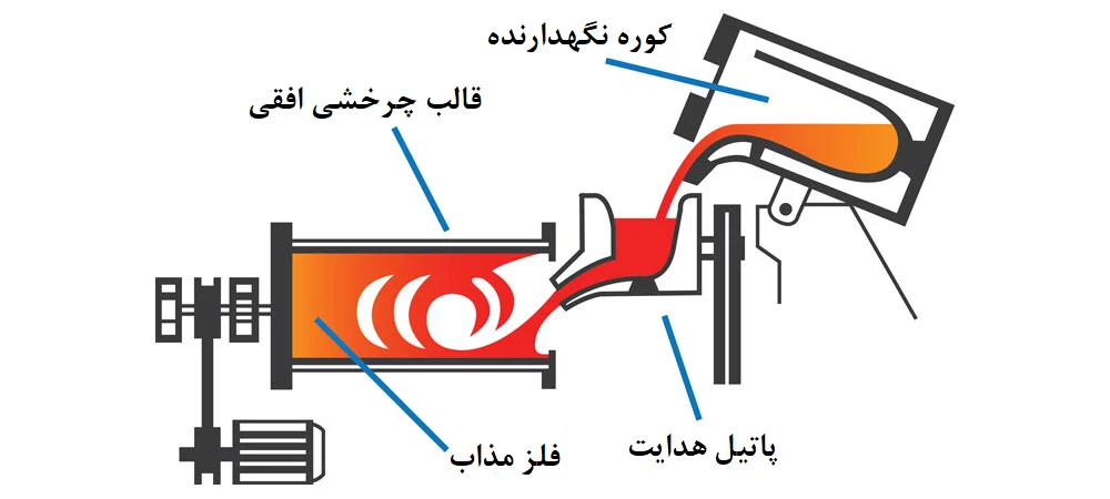 ریخته گری سانتریفیوژ (Centrifugal Casting) یا ریخته گری گریز از مرکز، یکی از روشهای پیشرفته و پرکاربرد ریخته گری است که در آن از نیروی گریز از مرکز برای شکلدهی به فلزات استفاده میشود. در این فرآیند، فلز مذاب به داخل یک قالب در حال چرخش ریخته میشود و نیروی گریز از مرکز، فلز را به سمت دیوارههای قالب هدایت میکند و باعث شکلگیری نهایی قطعه میشود. به عبارت دیگر، حرکت چرخشی قالب نقش اصلی را در تشکیل قطعه بر عهده دارد و برخلاف روشهای سنتی که فلز تنها با نیروی جاذبه وارد قالب میشود، در این روش، نیروی گریز از مرکز به ایجاد فشاری مضاعف برای پر کردن قالب کمک میکند.